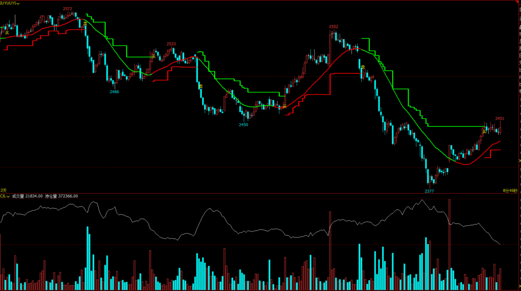 • 绿色轨道线:代表强势多头趋势,此时价格坚挺,是顺势而为、寻找买点的好时机。