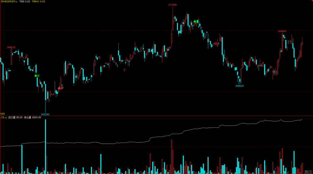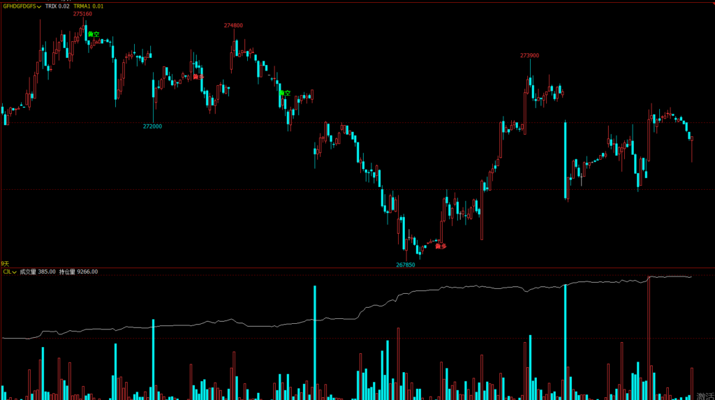 (此处请插入您在文华财经软件中的指标效果截图,图中应清晰展示出“做多”、“做空”的文字提示标记) (图片说明:如图所示,指标会在符合条件的位置清晰标注“做多”或“做空”汉字提示,辅助判断。)