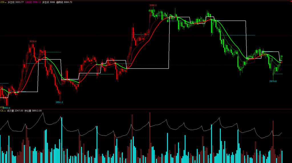 - 趋势线:动态趋势指标,用红绿色显示趋势方向