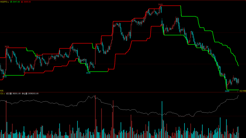 DRAWCOLORLINE(跟<踪,底,COLORRED,COLORGREEN),LINETHICK3;