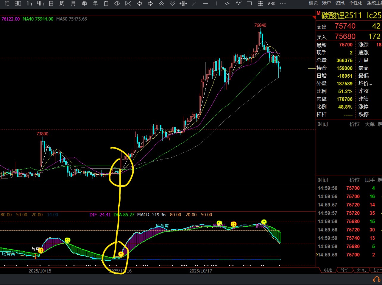 背离:=REF(CLOSE,A1+1)>CLOSE AND DIF>REF(DIF,A1+1) AND CROSS(DIF,DEA);