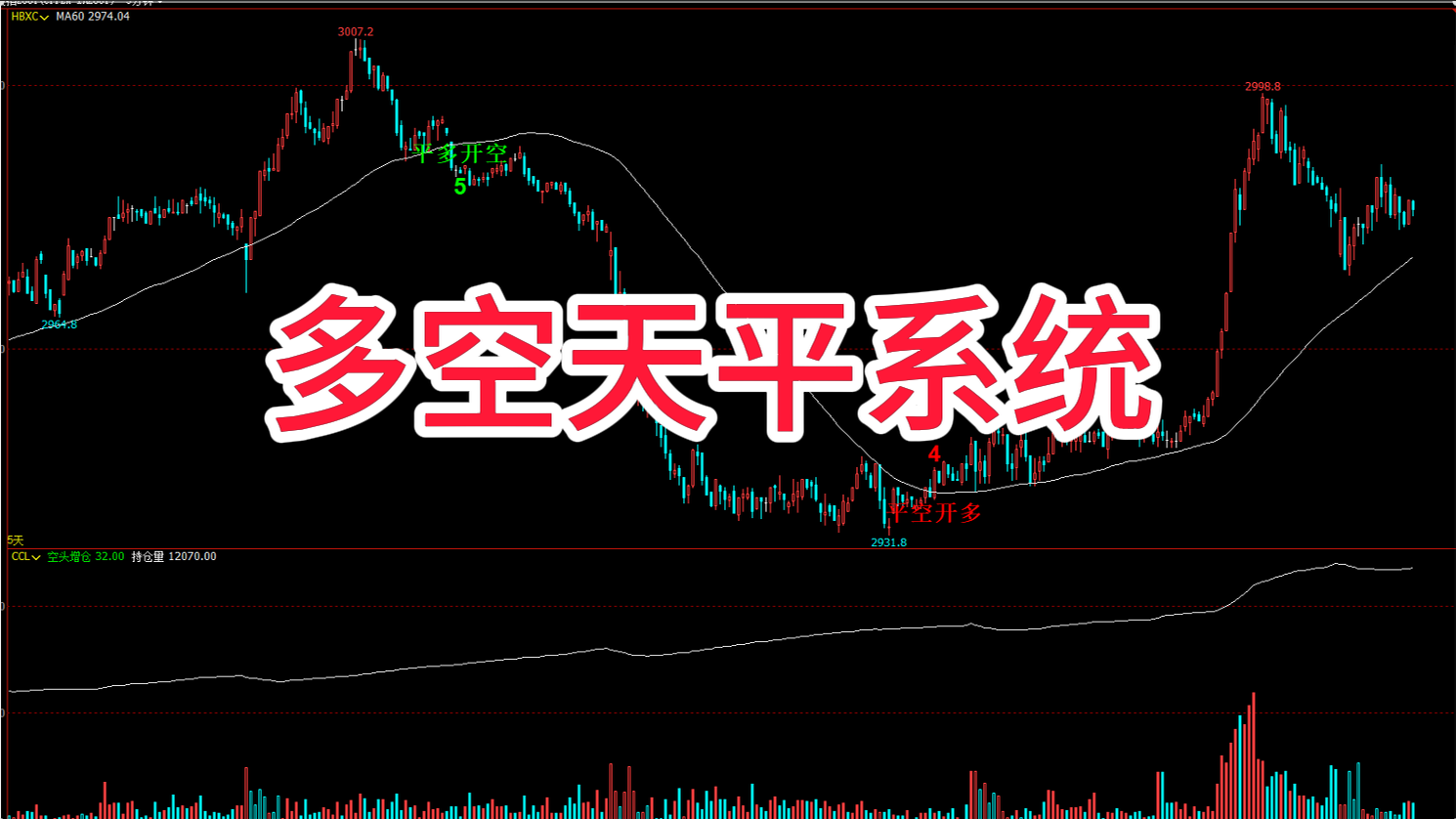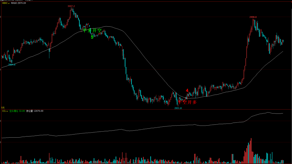 DRAWTEXT(CROSSDOWN(MA5,MA60),H,'平多开空'),FONTSIZE30,COLORGREEN;