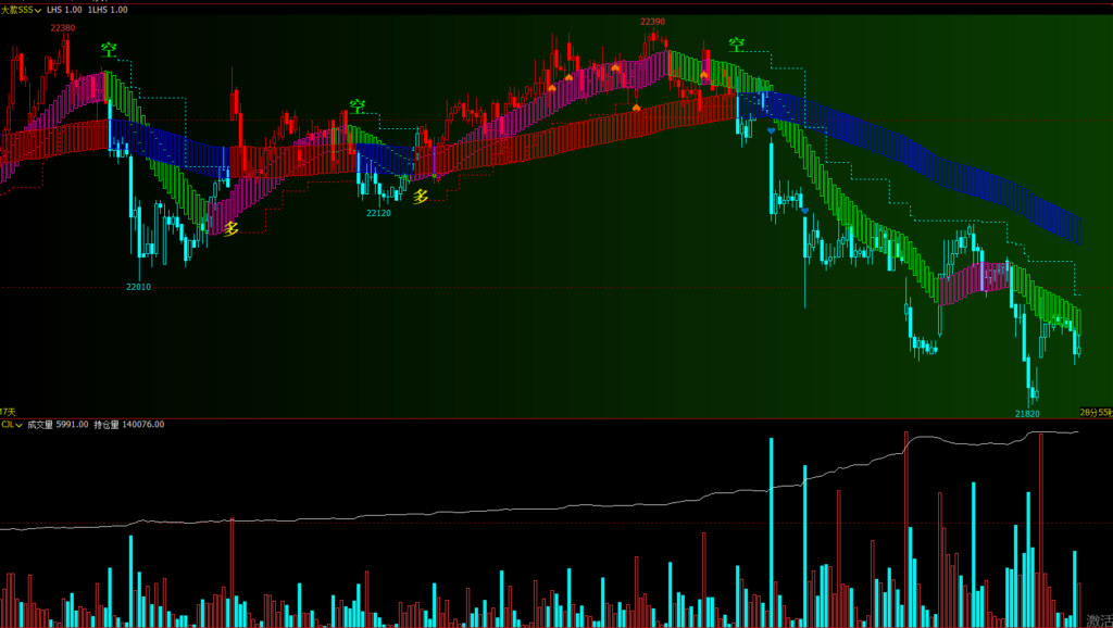 DRAWTEXT(CROSS(TMP,0),HH,'空'),COLORGREEN,FONTSIZE30;