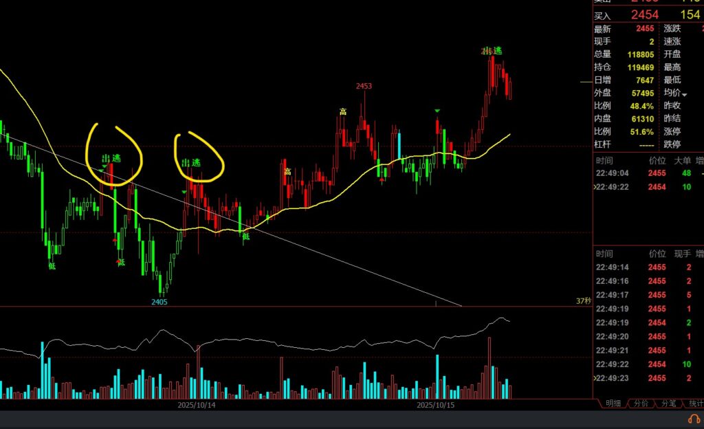 DRAWTEXT(CROSS(CCI,-200)&&COUNT(CROSS(CCI,-200),BARSLASTCOUNT(HH1>LL1)),L,'出逃'),VALIGN0,ALIGN1,COLORYELLOW,FONTSIZE19;