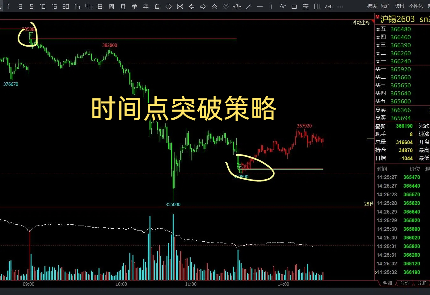 DRAWTEXT(CROSSDOWN(C,REF(C,BARSLAST(TT))-10*MINPRICE),H,'空'),COLORGREEN;