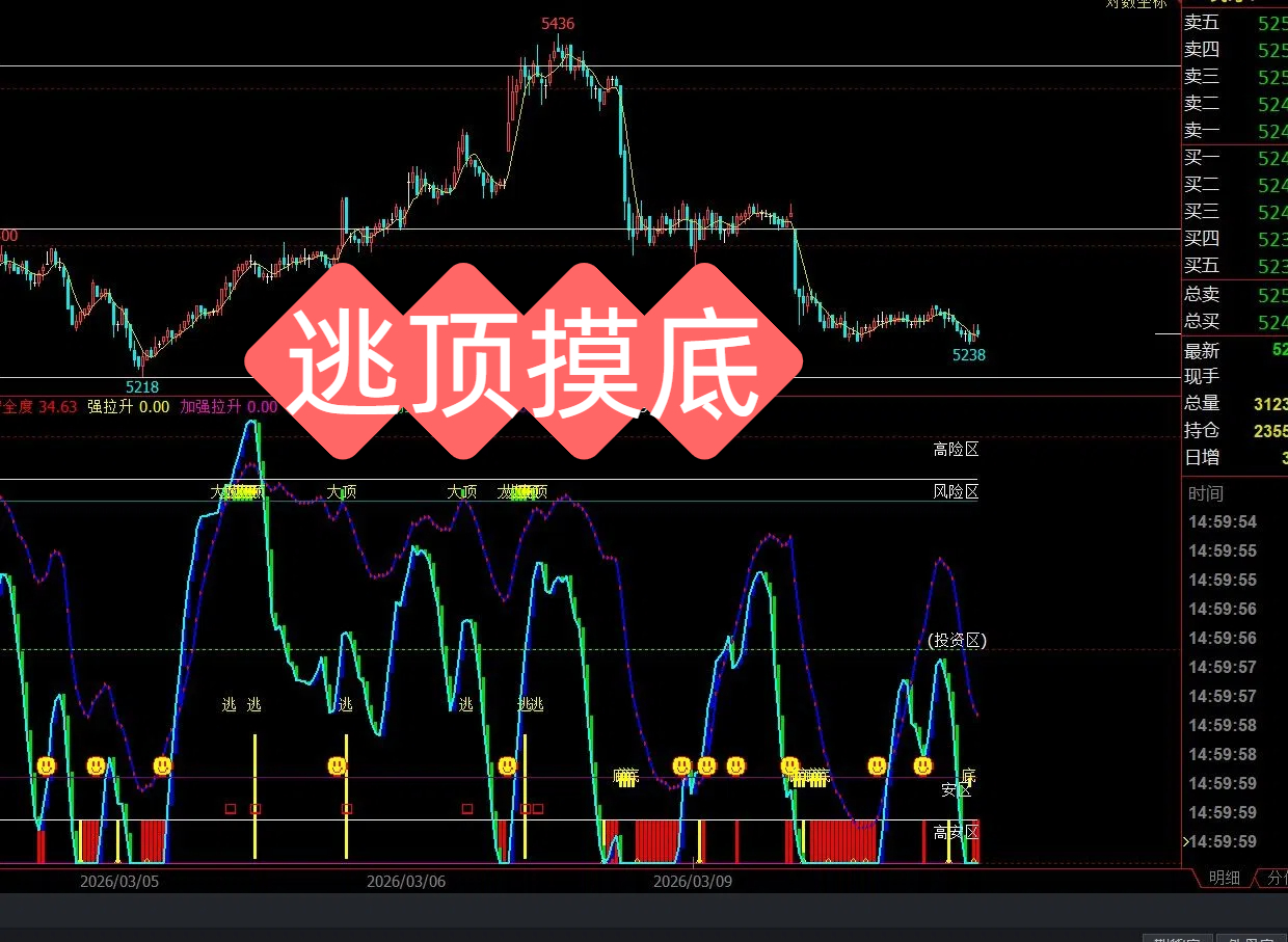 DRAWTEXT(CURRBARSCOUNT=6,85,'风险区'),COLORWHITE;